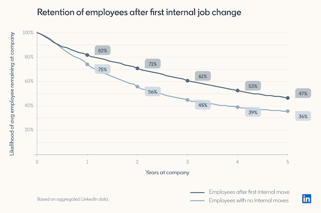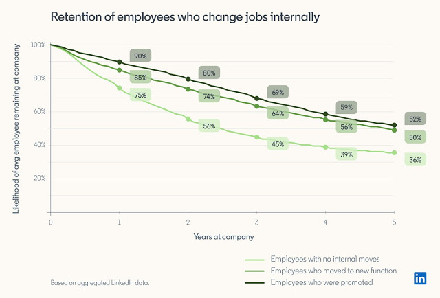 Специалисты, которые перемещаются внутри компании, с меньшей вероятностью уйдут, нежели те, кто сидит на месте.