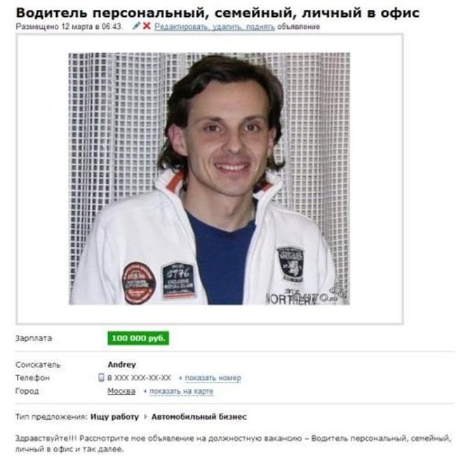 2. А этот парень ну очень нуждается в работе и судя по всему уже связан кредиторами… или своей девушкой?