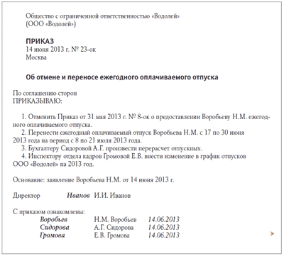 Во-вторых, работодателю нужно определить, готов ли он позволить сотруднику не идти в отпуск, когда у него по закону нет права сделать это в одностороннем порядке. По согласованию между сотрудником и руководителем организации даты отдыха можно перенести (ст. 123 ТК РФ). Если компания желает пойти навстречу работнику, уплаченные суммы за несостоявшийся отдых бухгалтер должен зачесть либо в будущую оплату труда, либо в следующие отпускные1, как указано в ситуации.