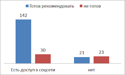 Полагаю, что никто особо не будет особо возражать, если я скажу, что три данных вопроса являются показателями HR-бренда. Поэтому постановка вопроса «Как влияет доступ в социальные сети на HR-бренд» кажется мне справедливой. Специалисты по матстатистике скажут, что термин «влияет» не корректен, что можно говорить только о взаимосвязи. И я отчасти соглашусь, но позвольте мне в моей модели факт доступа в социальные сети сделать предиктором силы HR-бренда.