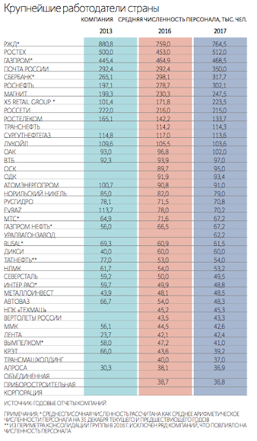 У нефтегазовых компаний давно не было новых проектов по разработке месторождений, говорит Рустам Барноходжаев, директор департамента по работе с ключевыми клиентами компании «Юнити». Активнее всего в этом году нанимала персонал «Роснефть». Компания «Роснефть» на запрос не ответила. По данным годовых отчетов, штат «Роснефти» с 2013 по 2017 г. вырос с 197 000 до 302 000 человек.