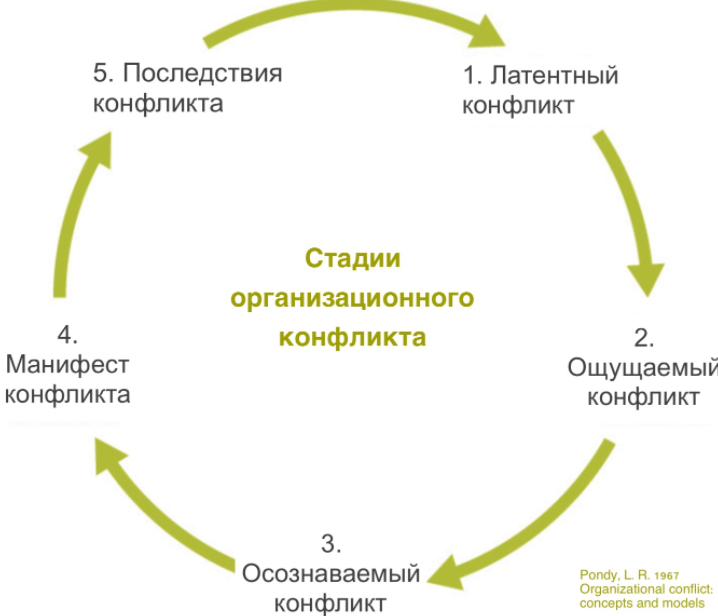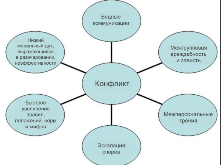 Симптомы, стадии и потенциальные причины организационных конфликтов